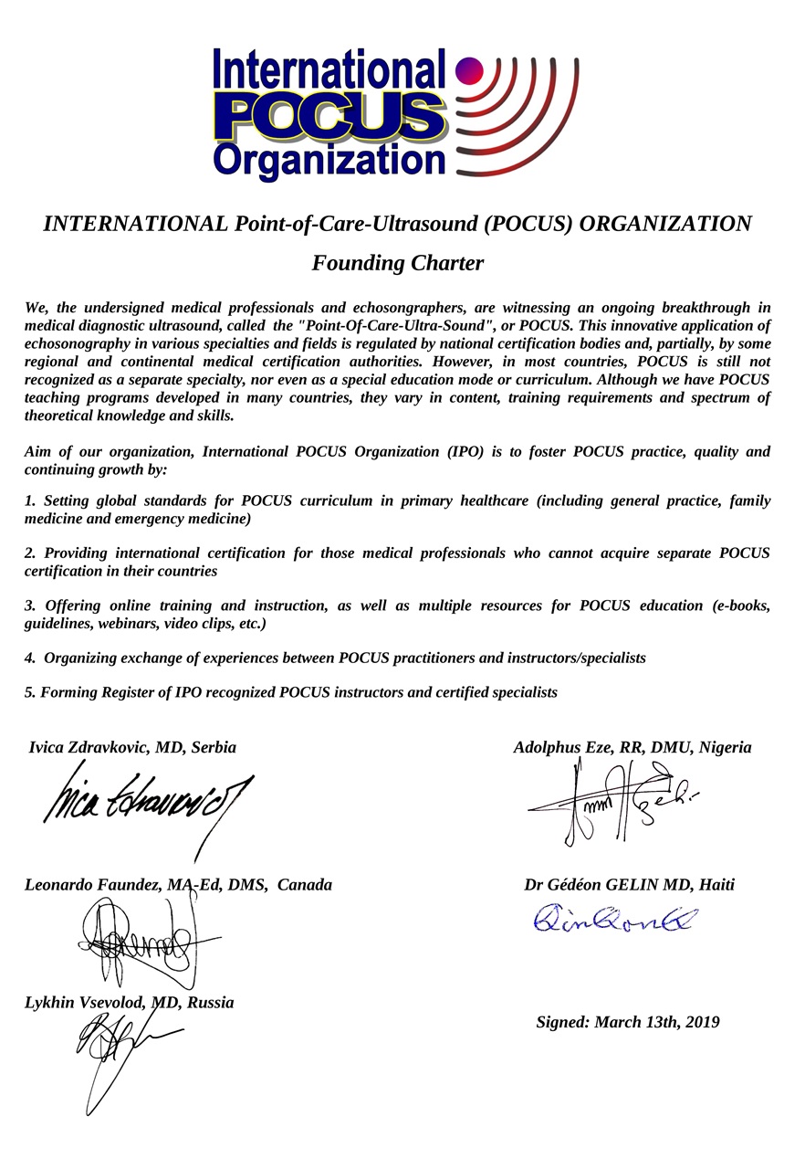 International Pocus Academy (IPA) is founded as an extension of International POCUS Organization (IPO). The IPO was founded on March 19th, 2019 by several members of various national and international POCUS certification bodies. The purpose of IPO was to promote the quality of Point-Of-Care-Ultra-Sound education by setting standards and POCUS curriculum, providing international certification, online training, and continuous education in medical diagnostic ultrasound. The Academy was initially formed within the IPO. In 2023, it was decided to upgrade the entire IPO into an Academy - an international educational network of national schools of Point-Of-Care-Ultra-Sound (POCUS). Over the past few years, the Academy has undergone another transformation. Some national schools have ceased to be active, and some members who were previously part of the Board or Directors have now become just observers of our activities. In this sense, IPA has truly become a network of schools with a loosely structured collaboration, rather than a formal organization with strict hierarchy. Instead of the previous Board, the Academy is now governed by a Council of Directors, composed of the most active representatives of the strongest POCUS schools that are part of our network. Currently, this includes representatives from POCUS Academy of Serbia, representatives from the Moscow POCUS organization led by Dr. Vsevolod Lykhin, as well as countries where POCUS schools were established by this outstanding enthusiast - such as Kyrgyzstan, Kazakhstan, Armenia, and others. We also have our honorary president Dr. Gedeon Gelin from Haiti, who continues with his enthusiasm despite all the horible events in his country. Our friend, Dr. John Wilton from the USA leads a great Facebook page where diagnostic knowledge can also be shared. We also have members and friends in UAE, Nigeria, Spain, Germany, Bosnia and Herzegovina, etc... Decisions are currently made by consensus in non-formal meetings, and we expect that POCUS schools in other countries will soon develop to the same level as the POCUS Academy of Serbia. |